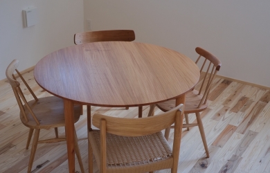 Furniture福島・会津にあるスリートラスト工務店さんのモデルハウスへ、ケヤキの円いテーブルと、「nord...